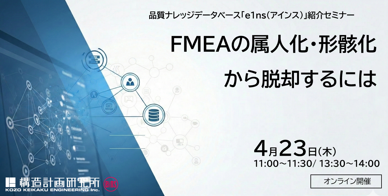 4/23(木)FMEAの属人化・形骸化から脱却するには「e1ns(アインス)」紹介セミナーのご案内